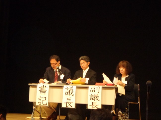 | 議長団、左より小池正造書記・熊江秀一議長・田中かおる副議長 |