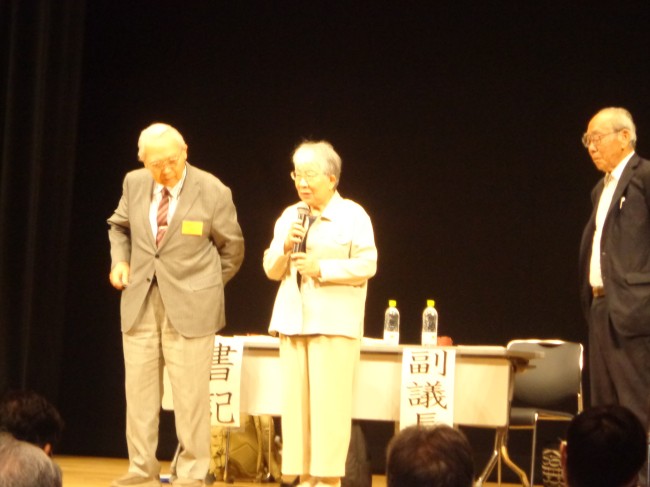 | 隠退教師紹介、左から疋田國麿呂教師、武井アイ子教師、村田元教師 |