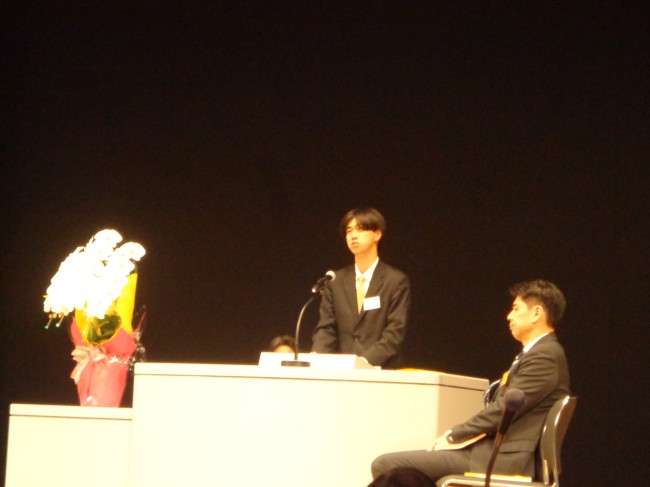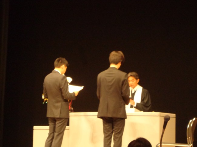 | 同じく所信表明をする北田翔太郎伝道師(上尾使徒教会) |